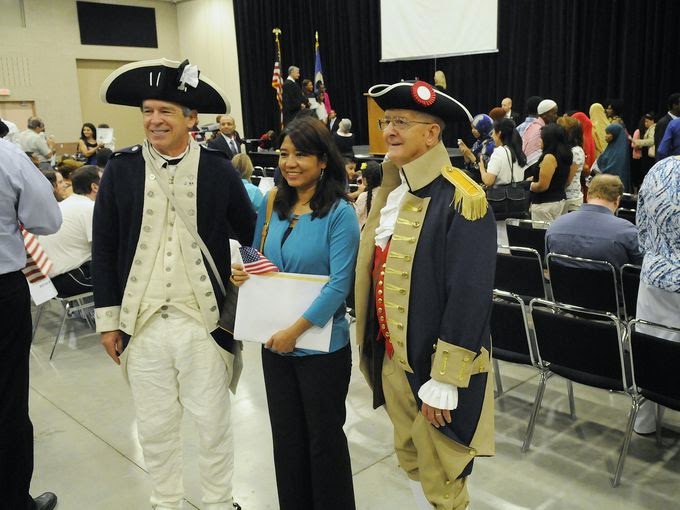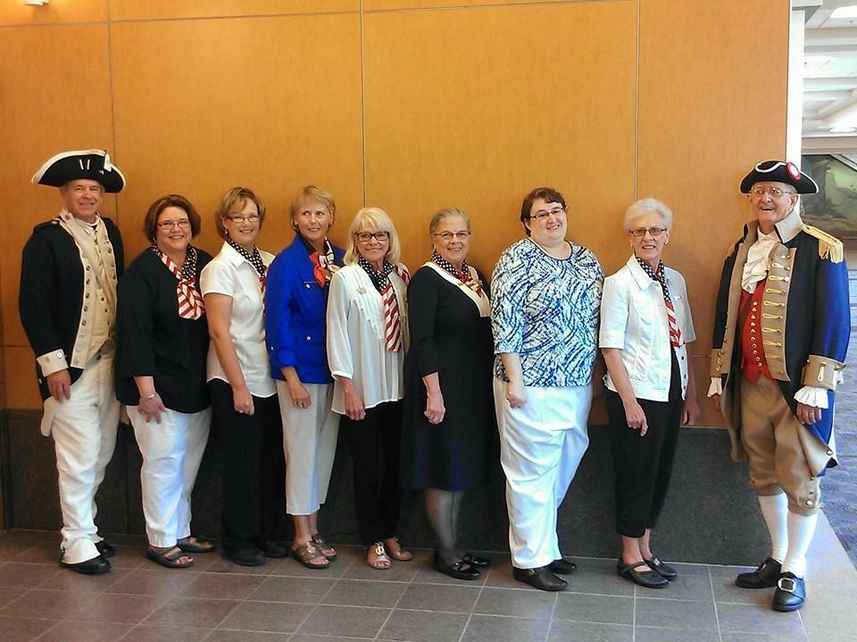 The Minnesota Sons of the American Revolution Color Guard  posted the colors at the citizenship ceremony for 84 new citizens on 23 July.  Working in conjunction with the Sarah Steeley Sibley chapter of the Daughters of the American Revolution, the Guard members posted the colors at the beginning of the ceremony and following the ceremony congratulated many of the new citizens.